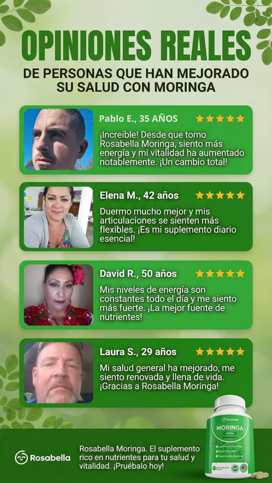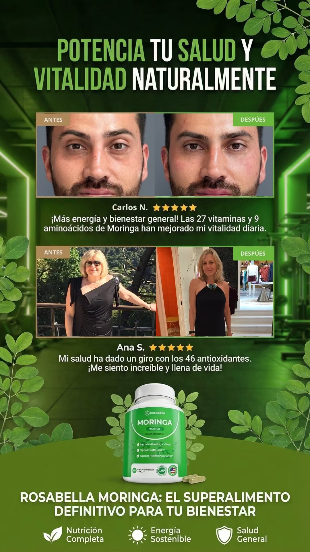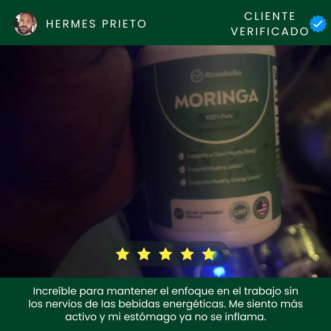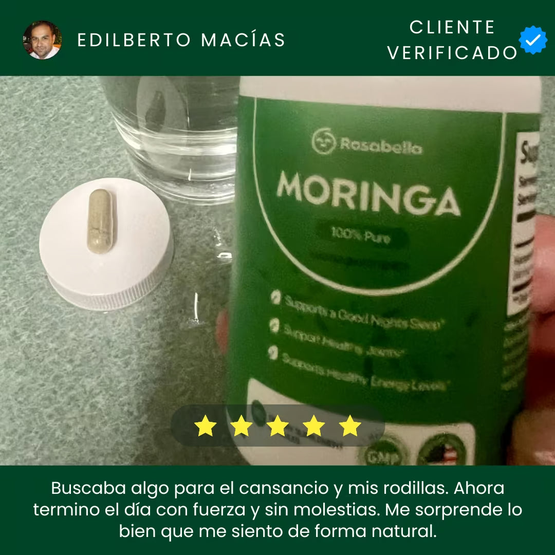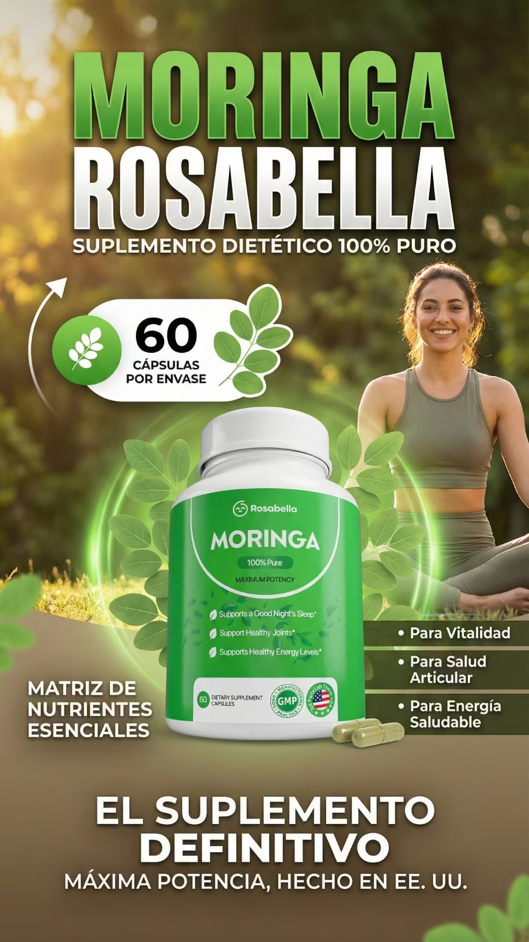 Descubre cómo Rosabella Cápsulas de Moringa ayuda a elevar tu energía natural, nutrir tu piel y apoyar tu confort intestinal con el multivitamínico más potente de la naturaleza.