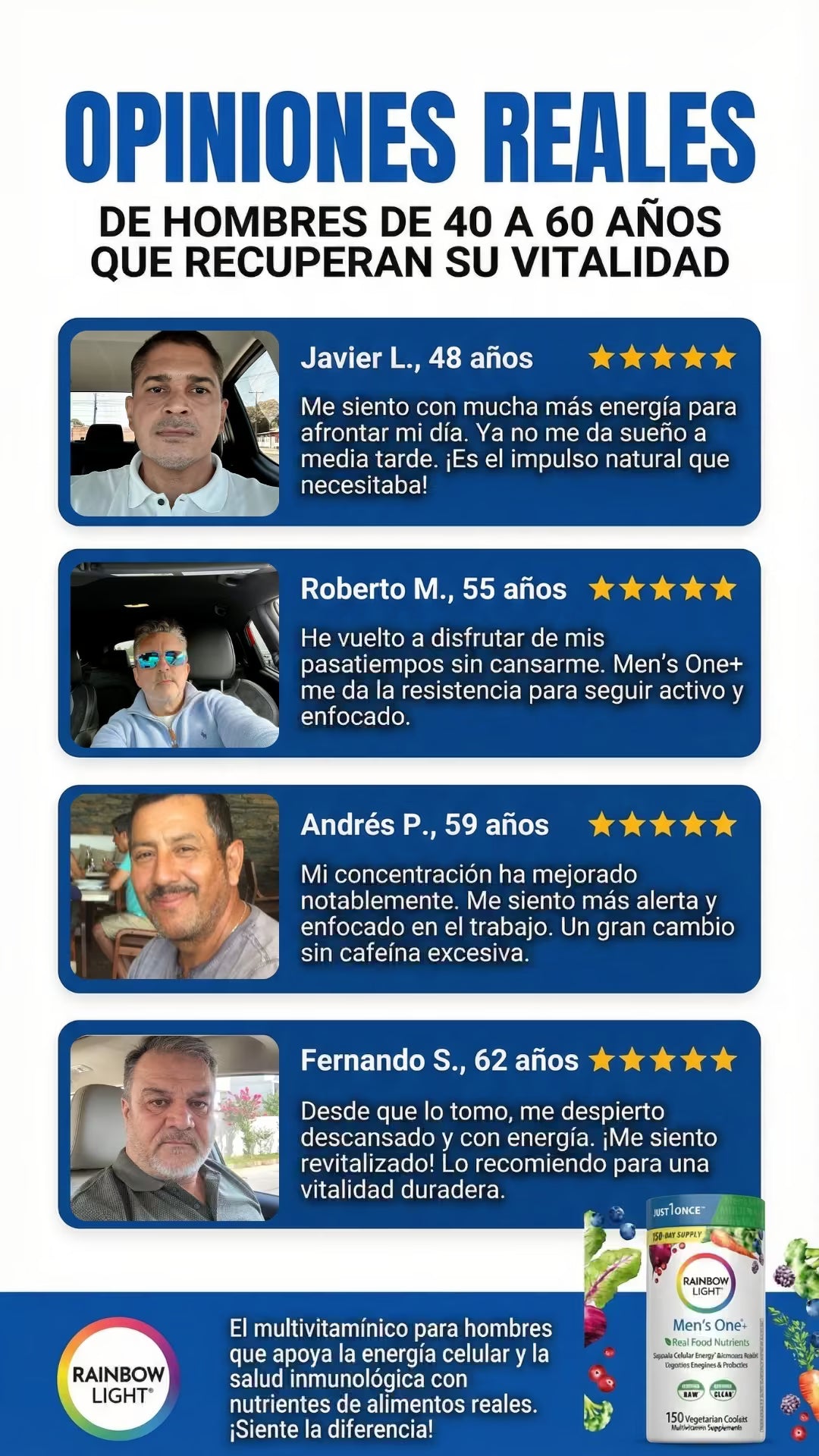 Descubre cómo Men's One reactiva tu energía masculina, fortalece tu sistema inmune y potencia tu vitalidad diaria desde la primera semana.