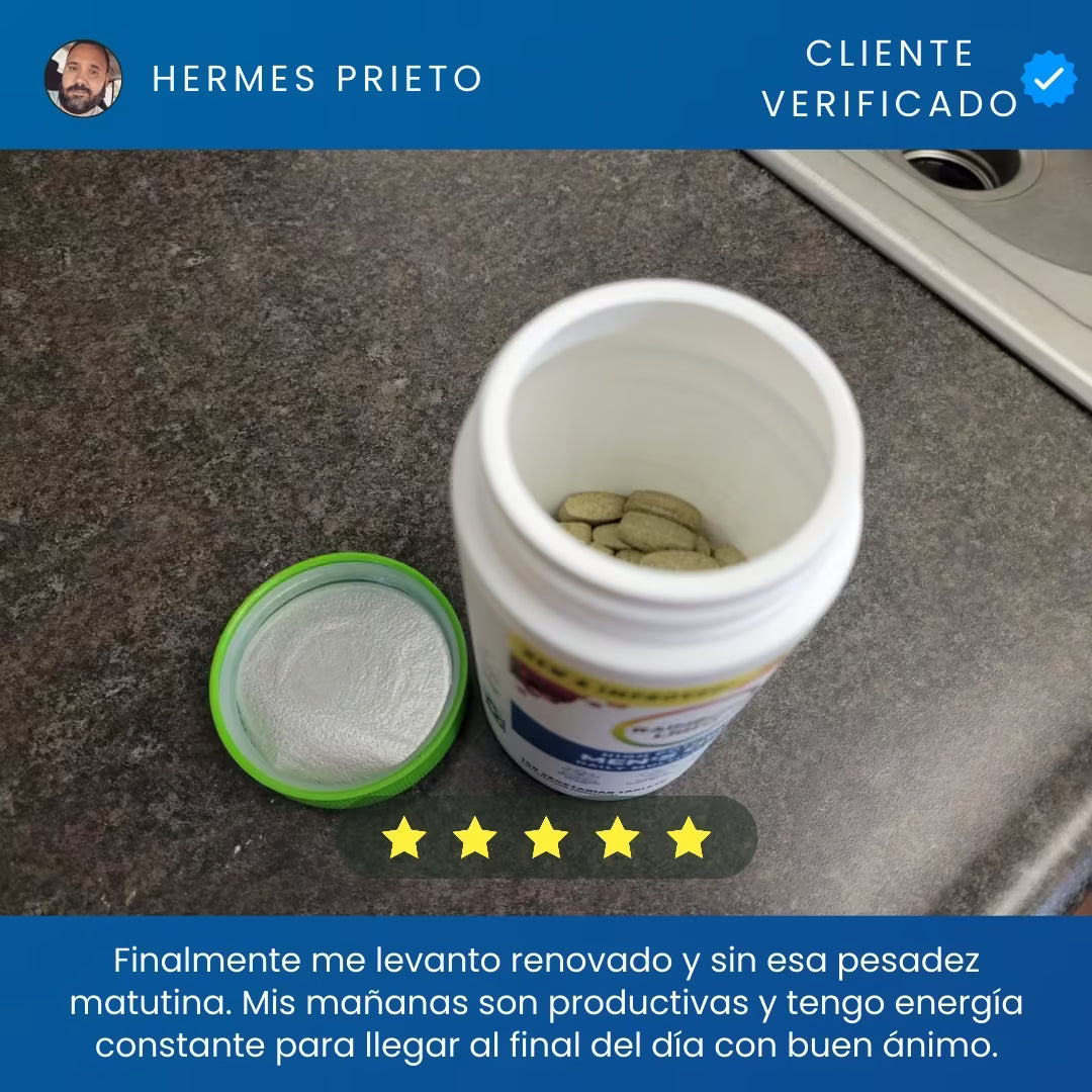 Solo necesitas tomar una tableta al día, preferiblemente con el desayuno para maximizar la absorción de nutrientes.